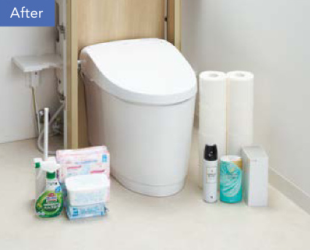お掃除道具や予備のトイレットペーパーなど、トイレには置いておきたいものがいっぱい。Jフィットならキャビネットにしっかり収納できます。