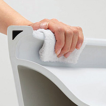![]() 側面をカバーで覆い、お掃除がしやすいデザインに。 | ![]() 汚れのたまりやすい便器のフチを無くし、ひと拭きでお掃除完了! | ![]() 渦を巻くようなトルネード水流が、少ない水で便器全体をぐるりと効率よくしっかり洗い流します。 | ![]() 陶器表面の凸凹をナノレベルで滑らかに加工。「汚れが付きにくく落ちやすい」を実現しました。 |