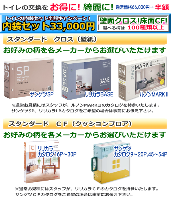 トイレと一緒にトイレ以外の壁面クロス/床CF等もご相談ください! |